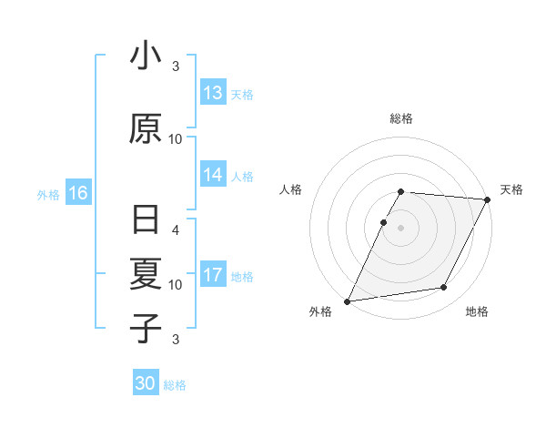 小原 日夏子さんを姓名の画数から五運を鑑定