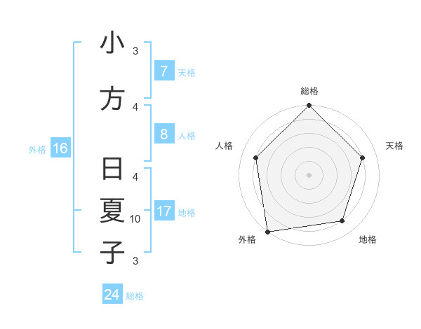 小方 日夏子さんを姓名の画数から五運を鑑定