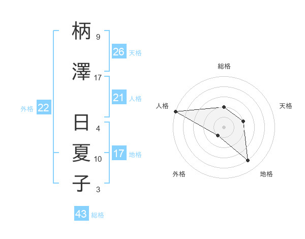 柄澤 日夏子さんの天格は26画の2点!