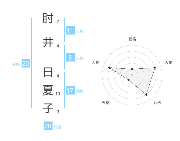 肘井 日夏子さんの外格は20画の1点!
