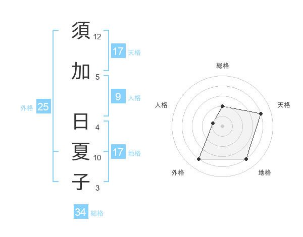 須加 日夏子さんを姓名の画数から五運を鑑定