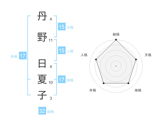 丹野 日夏子さんの天格は15画の4点!