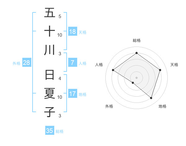 五十川 日夏子さんを姓名の画数から五運を鑑定