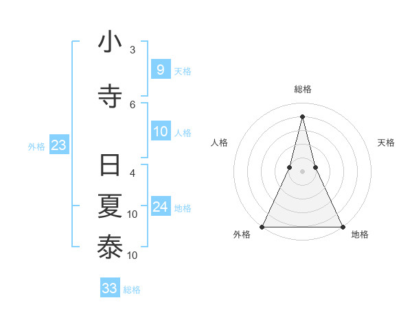 小寺 日夏泰さんの総格は33画の4点!
