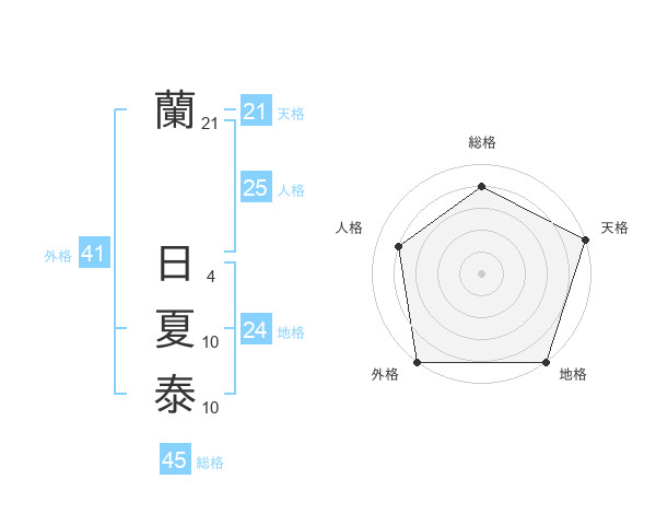 蘭 日夏泰さんを姓名の画数から五運を鑑定