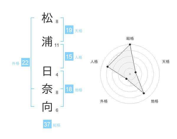 松浦 日奈向さんを姓名の画数から五運を鑑定