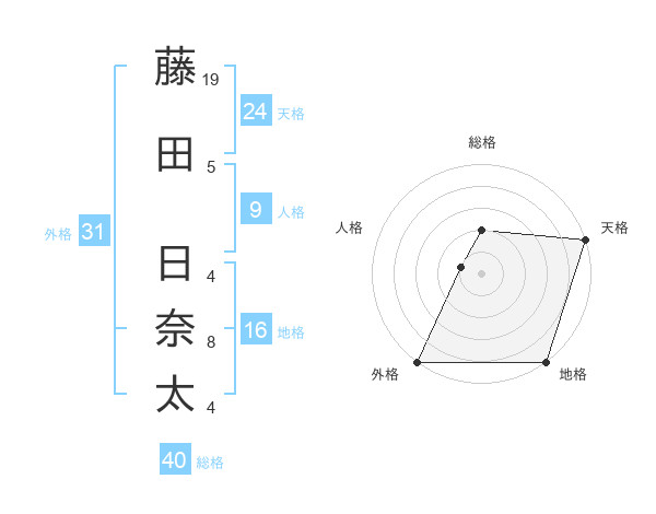 藤田 日奈太さんを姓名の画数から五運を鑑定