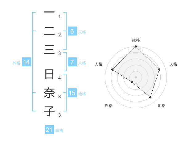 一二三 日奈子さんの総格は21画の5点!