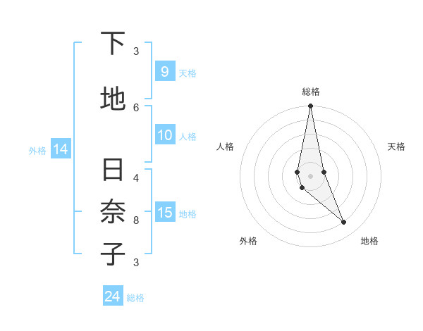 下地 日奈子さんを姓名の画数から五運を鑑定