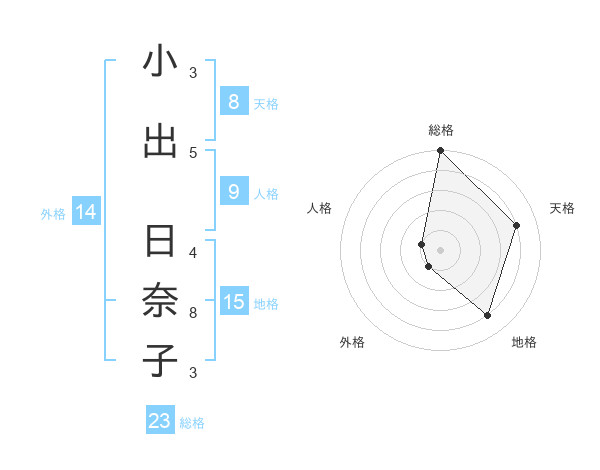 小出 日奈子さんを姓名の画数から五運を鑑定
