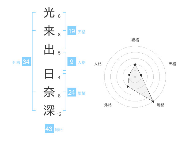 光来出 日奈深さんの地格は24画の5点!