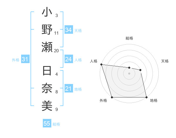 小野瀬 日奈美さんを姓名の画数から五運を鑑定