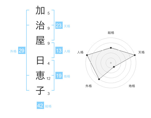 加治屋 日恵子さんを姓名の画数から五運を鑑定