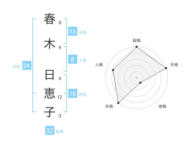 春木 日恵子さんを姓名の画数から五運を鑑定