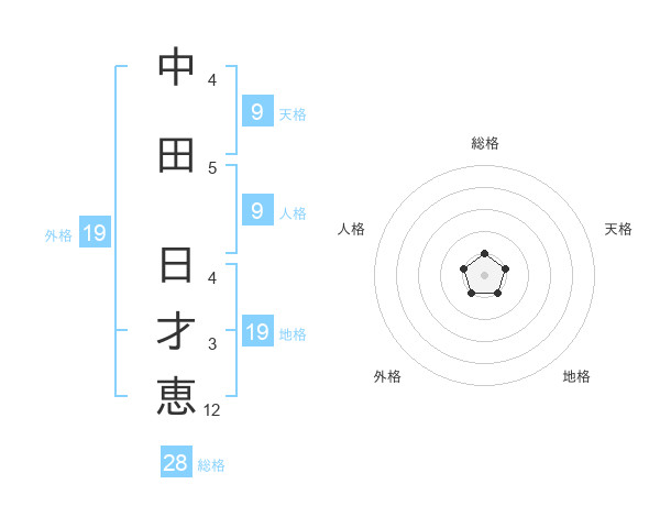 中田 日才恵さんを姓名の画数から五運を鑑定