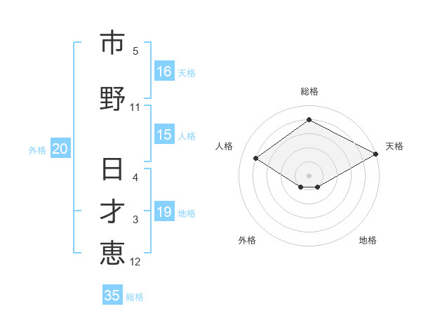 市野 日才恵さんを姓名の画数から五運を鑑定