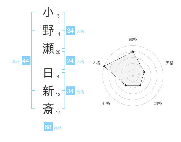 小野瀬 日新斎さんを姓名の画数から五運を鑑定