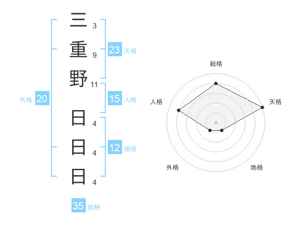 三重野 日日日さんを姓名の画数から五運を鑑定