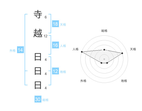寺越 日日日さんの外格は14画の1点!