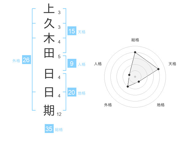 上久木田 日日期さんを姓名の画数から五運を鑑定