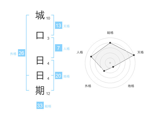 城口 日日期さんの天格は13画の5点!