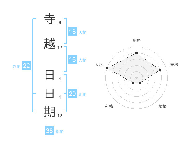 寺越 日日期さんを姓名の画数から五運を鑑定