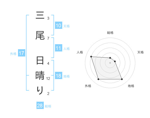 三尾 日晴りさんを姓名の画数から五運を鑑定