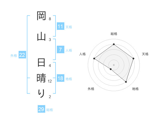 岡山 日晴りさんを姓名の画数から五運を鑑定