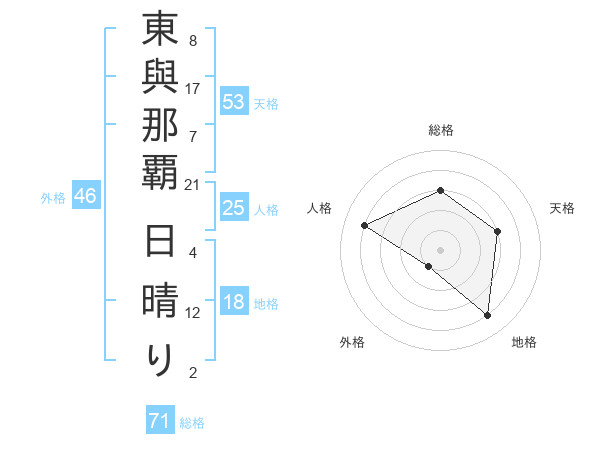 東與那覇 日晴りさんを姓名の画数から五運を鑑定