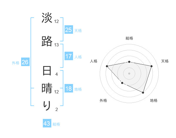 淡路 日晴りさんを姓名の画数から五運を鑑定