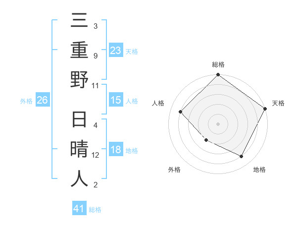 三重野 日晴人さんを姓名の画数から五運を鑑定