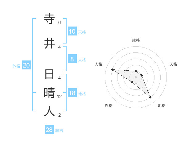 寺井 日晴人さんの地格は18画の4点!