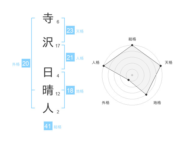 寺沢 日晴人さんの天格は23画の5点!