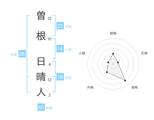 曽根 日晴人さんを姓名の画数から五運を鑑定