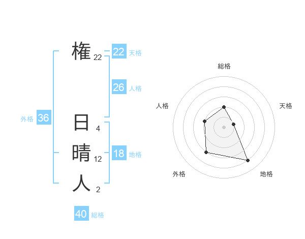 権 日晴人さんの総格は40画の2点!