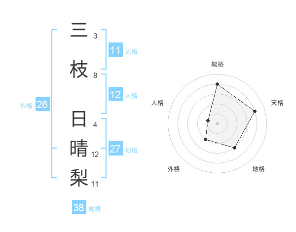 三枝 日晴梨さんを姓名の画数から五運を鑑定