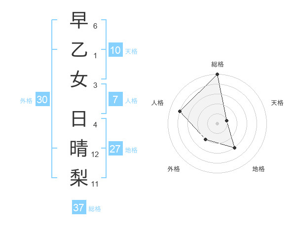 早乙女 日晴梨さんの総格は37画の5点!