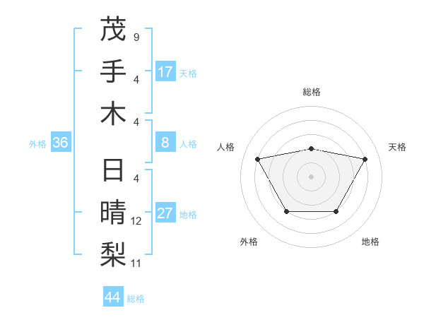 茂手木 日晴梨さんを姓名の画数から五運を鑑定