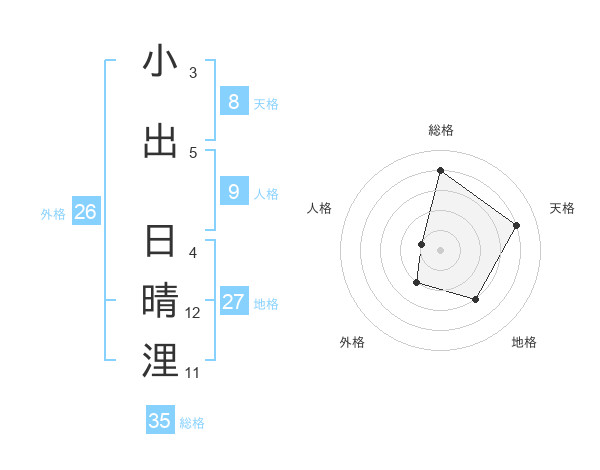 小出 日晴浬さんを姓名の画数から五運を鑑定