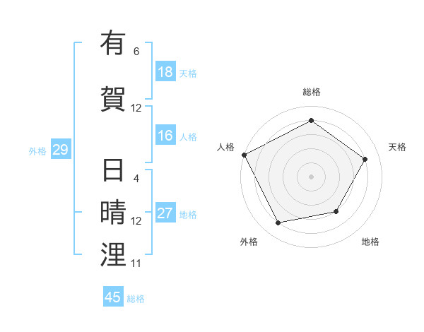 有賀 日晴浬さんを姓名の画数から五運を鑑定
