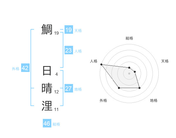鯛 日晴浬さんの外格は42画の3点!