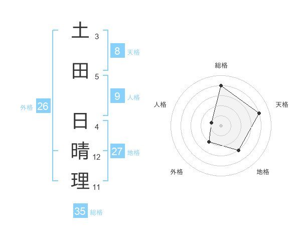 土田 日晴理さんを姓名の画数から五運を鑑定
