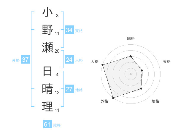 小野瀬 日晴理さんを姓名の画数から五運を鑑定