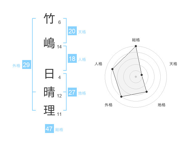 竹嶋 日晴理さんを姓名の画数から五運を鑑定