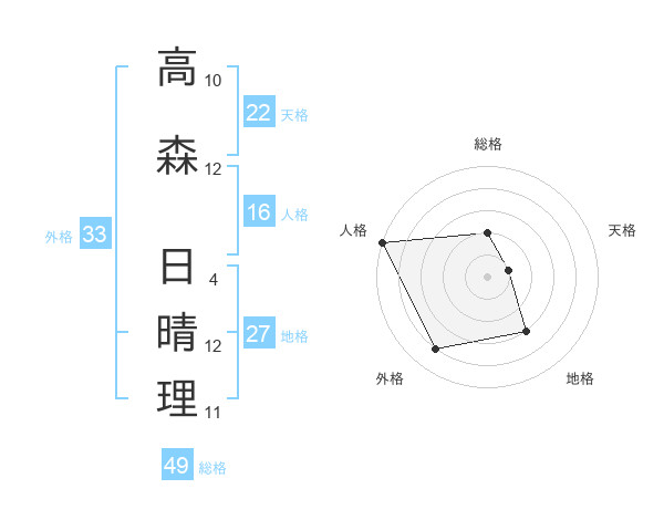 高森 日晴理さんを姓名の画数から五運を鑑定