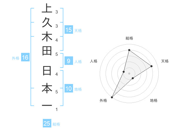 上久木田 日本一さんを姓名の画数から五運を鑑定