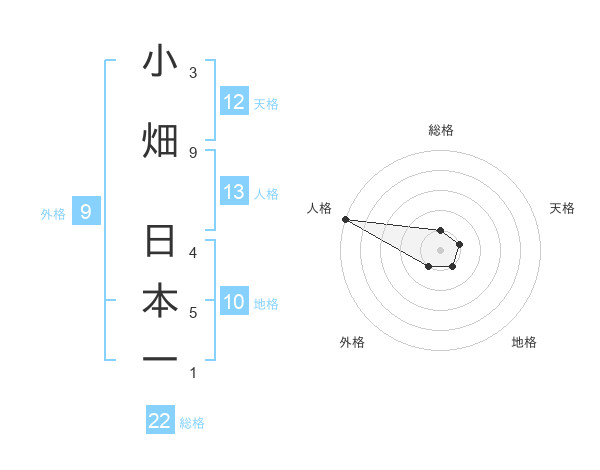 小畑 日本一さんを姓名の画数から五運を鑑定