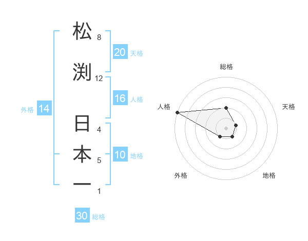 松渕 日本一さんの総格は30画の2点!