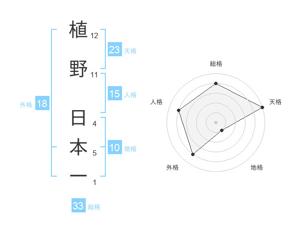 植野 日本一さんの天格は23画の5点!