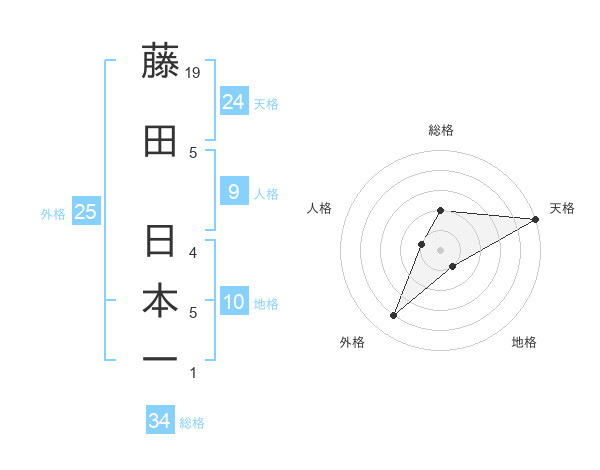 藤田 日本一さんを姓名の画数から五運を鑑定